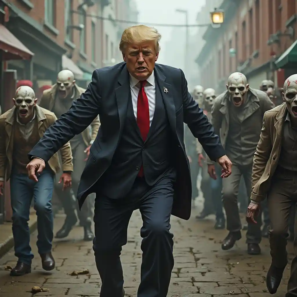 Donald Trump'ın bir sürü zombi tarafından kovulduğunu düşün
