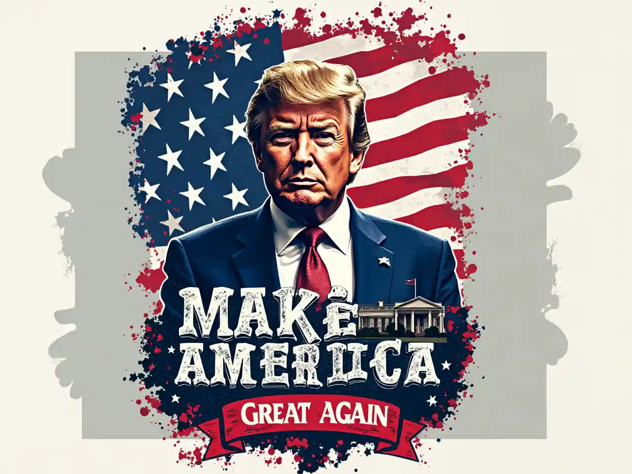 ABD'nin ruhunu temsil eden bir tişört için görsel olarak çarpıcı ve vatansever bir tasarım oluşturun. Tişört, 'Amerika'yı Yeniden Büyük Yap' sloganıyla cesur ve göz alıcı tipografi ile açık görünmelidir. İkonik Donald Trump, Amerikan bayrağı ve Beyaz Saray'ı yaratıcı ve sanatsal bir şekilde birleştir. Renk şeması öncelikle vatanseverliği yansıtmak için kırmızı, beyaz ve mavi kullanmalıdır. Ama arka planı açık bırak Genel tasarım, ülkeye tutkulu olan bireylere hitap ederek güç, birlik ve Amerikan gururu duygusunu ifade etmelidir. Hem erkek hem de kadın stillerine uygun değişiklikler yapın, tasarımının rahat giyinmeye uygun olmasını sağlayın".
