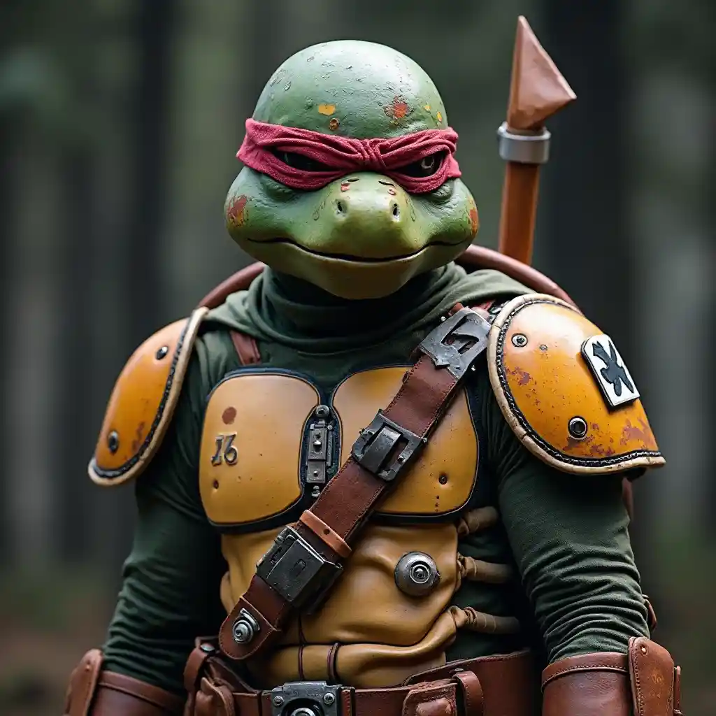 穿着曼達洛人盔甲的拉斐爾忍者龜