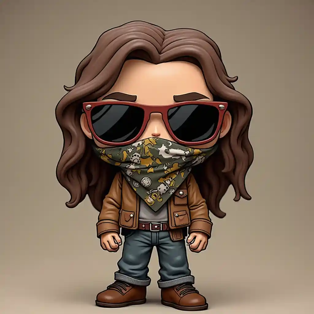 長髮小男孩,臉上戴着頭巾,戴着墨鏡funko pop