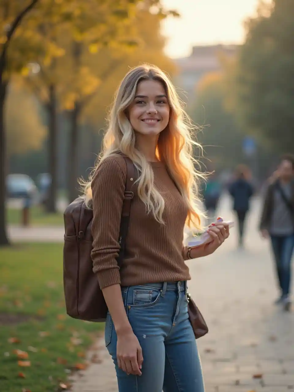 我需要爲一位金髮美女拍一段視頻,她揹着包,手裏拿着幾本書,她走路時,鏡頭焦點從她的腿開始,當她走路時,她抱着臉,她看起來微笑,她看着開羅大學。視頻激勵學生實現他們的夢想,去上開羅大學