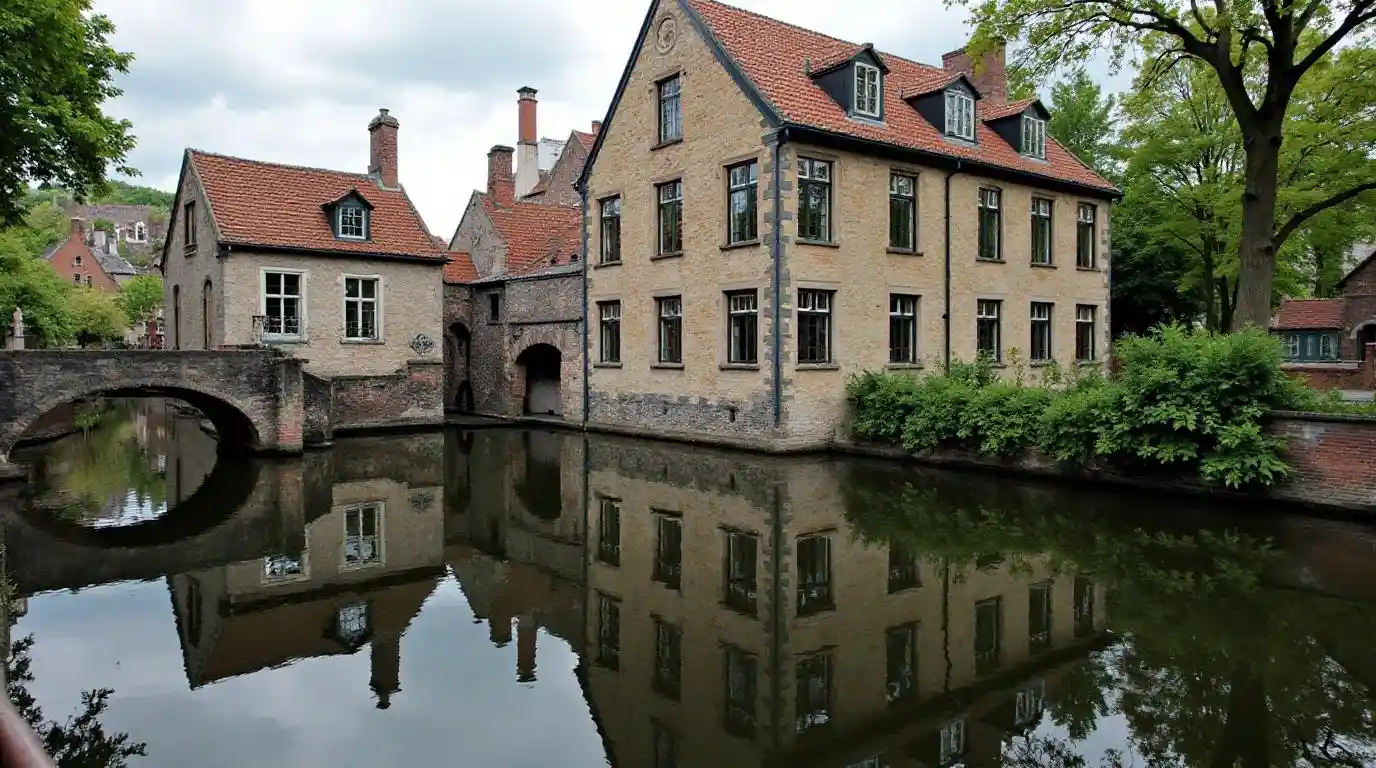 布魯日的一家客棧,完美地映照在運河的懷抱中。