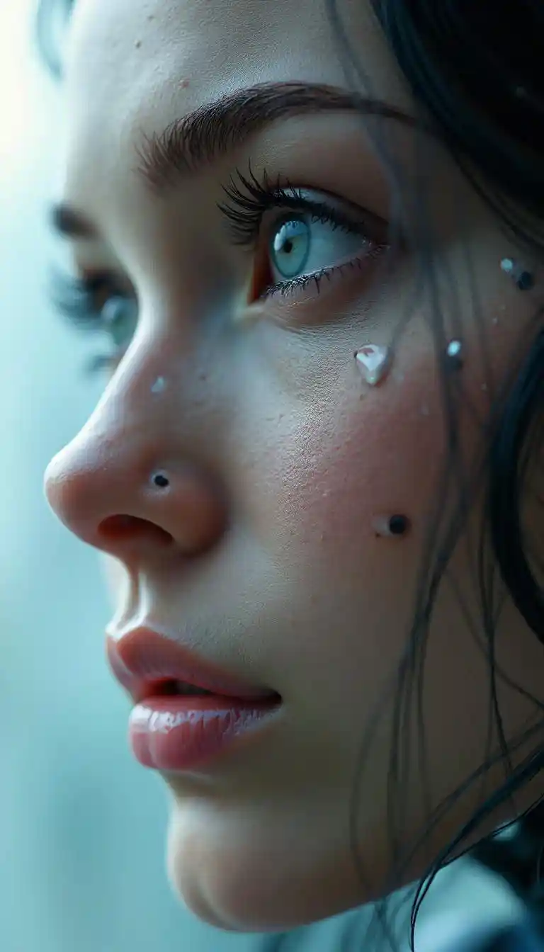 令人歎爲觀止的美,超高畫質,8k,半機械人臉部細節特寫,從側面看:1.331,銳利的目光,人與機器的驚豔混合,丨丨丨丨丨丨