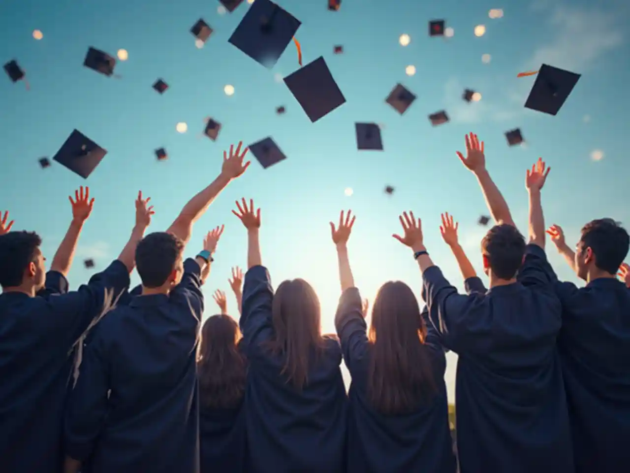 一個youcode的畢業典禮標誌,一些學生將畢業帽拋向空中