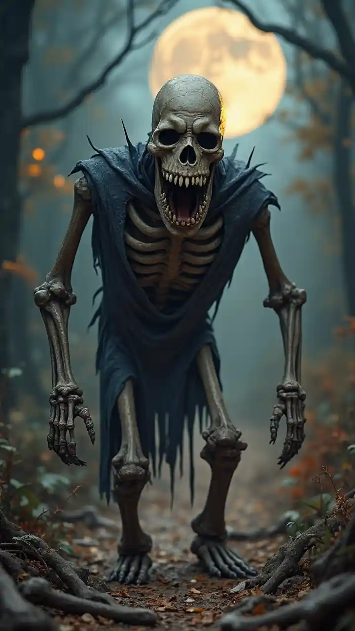 萬聖節的怪物,周圍的骷髏和骨頭,