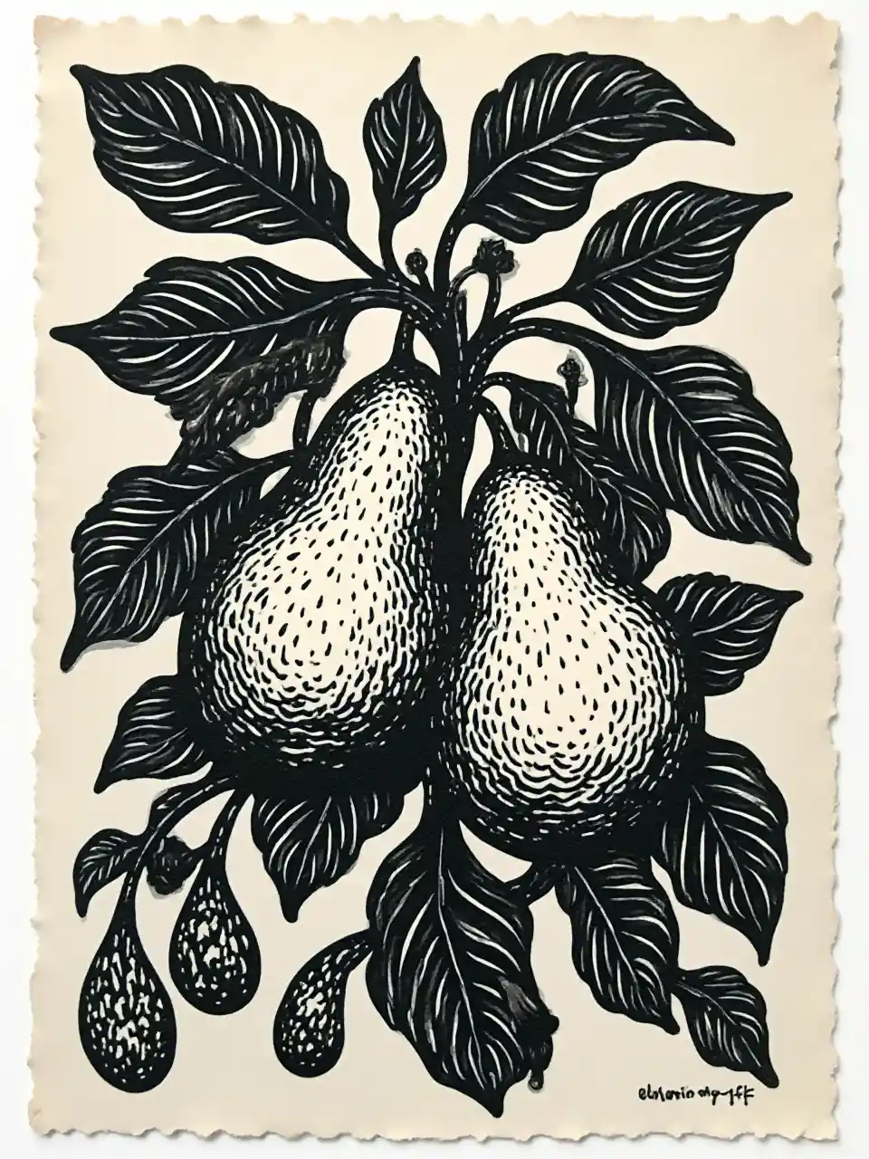 黑白linocut郵票梨園粗粗黑線