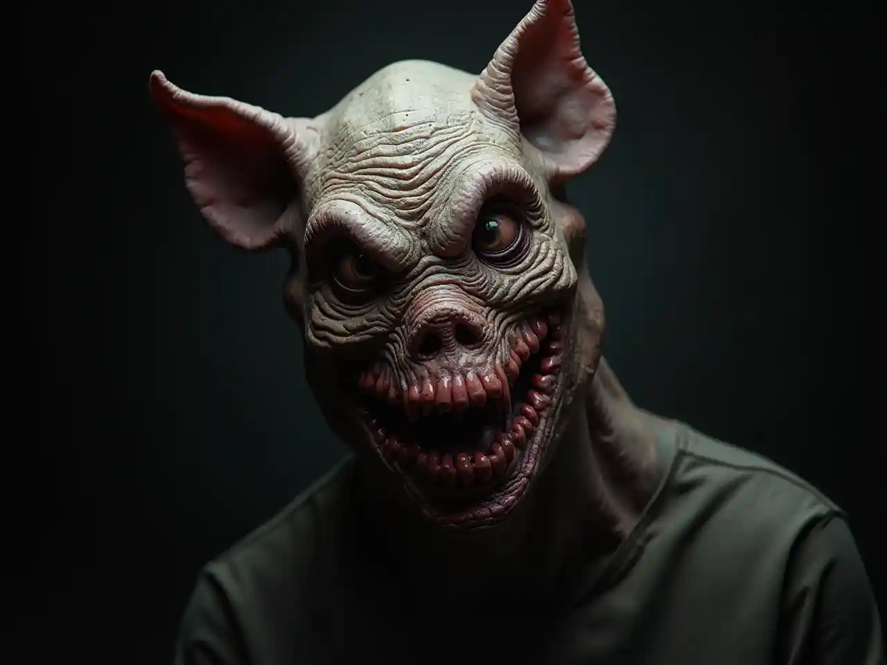 最奇怪,最可怕,豬臉怪物,恐怖的感覺,黑色背景,現實