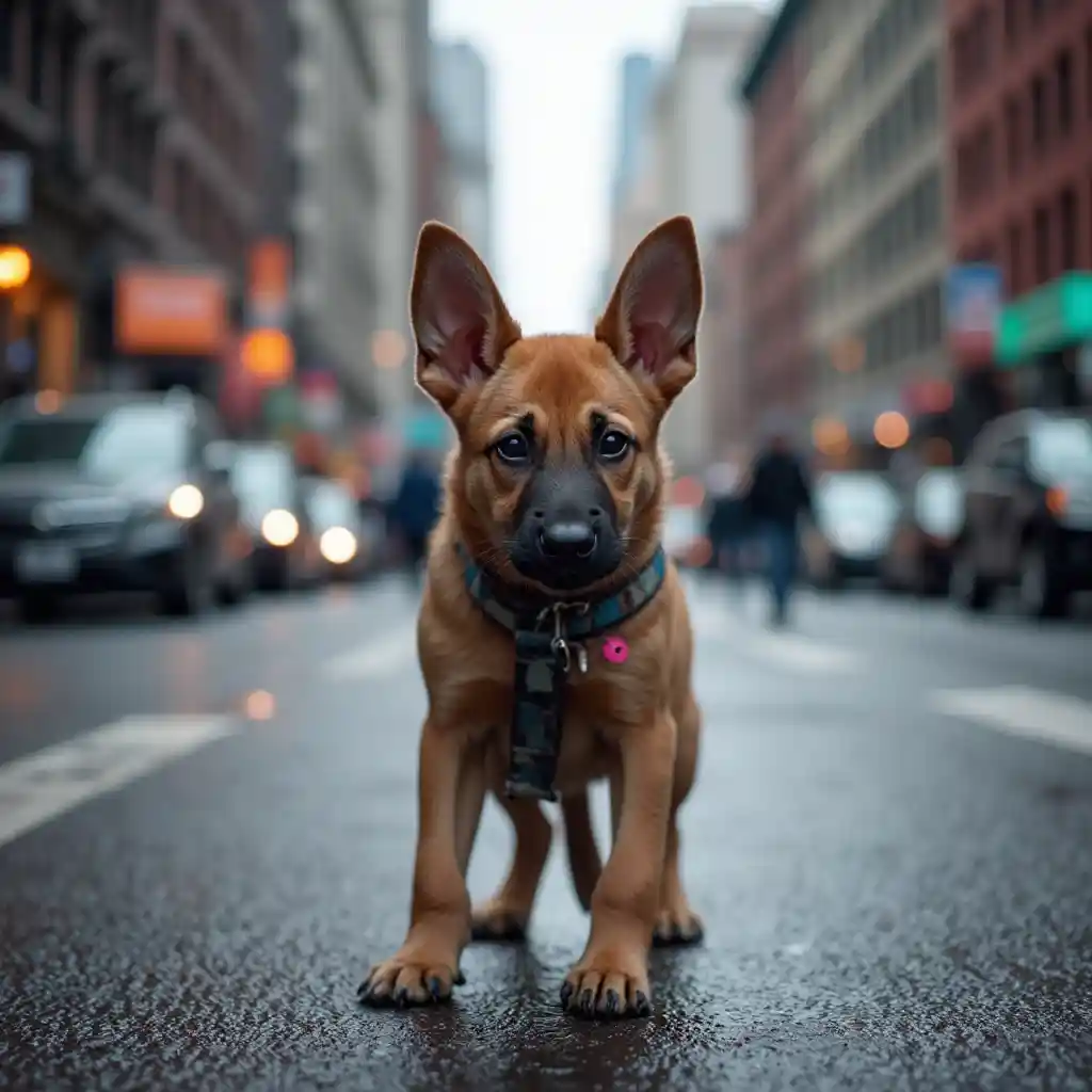 比特犬德國牧羊犬混合小狗,在紐約市街頭尋找它的媽媽寒冷的繁忙街道