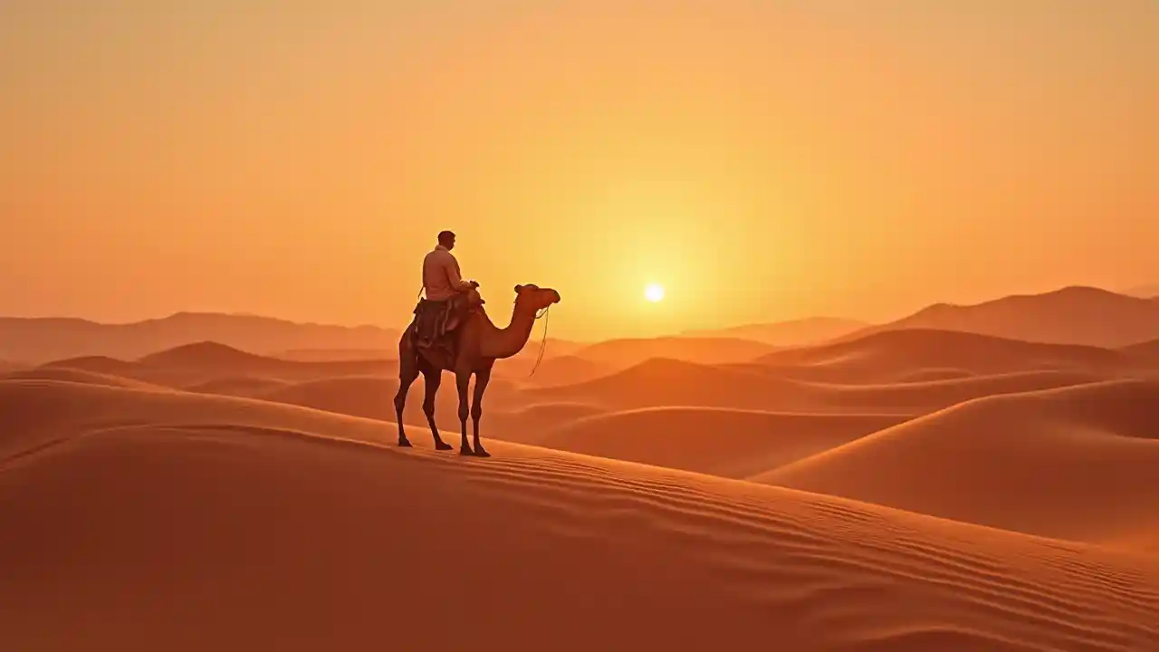 撒哈拉沙漠沙駝黎明時分的數字圖片