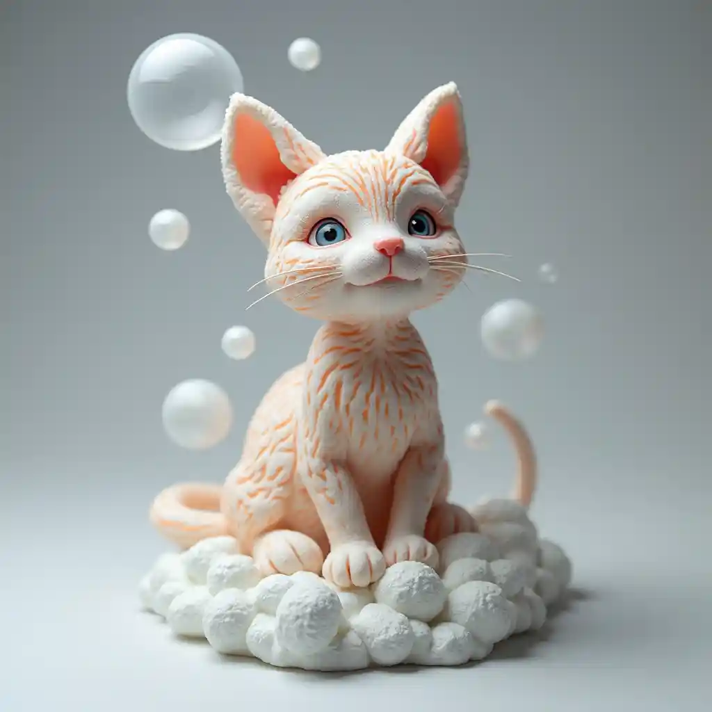 由肥皂泡沫和氣泡製成的貓