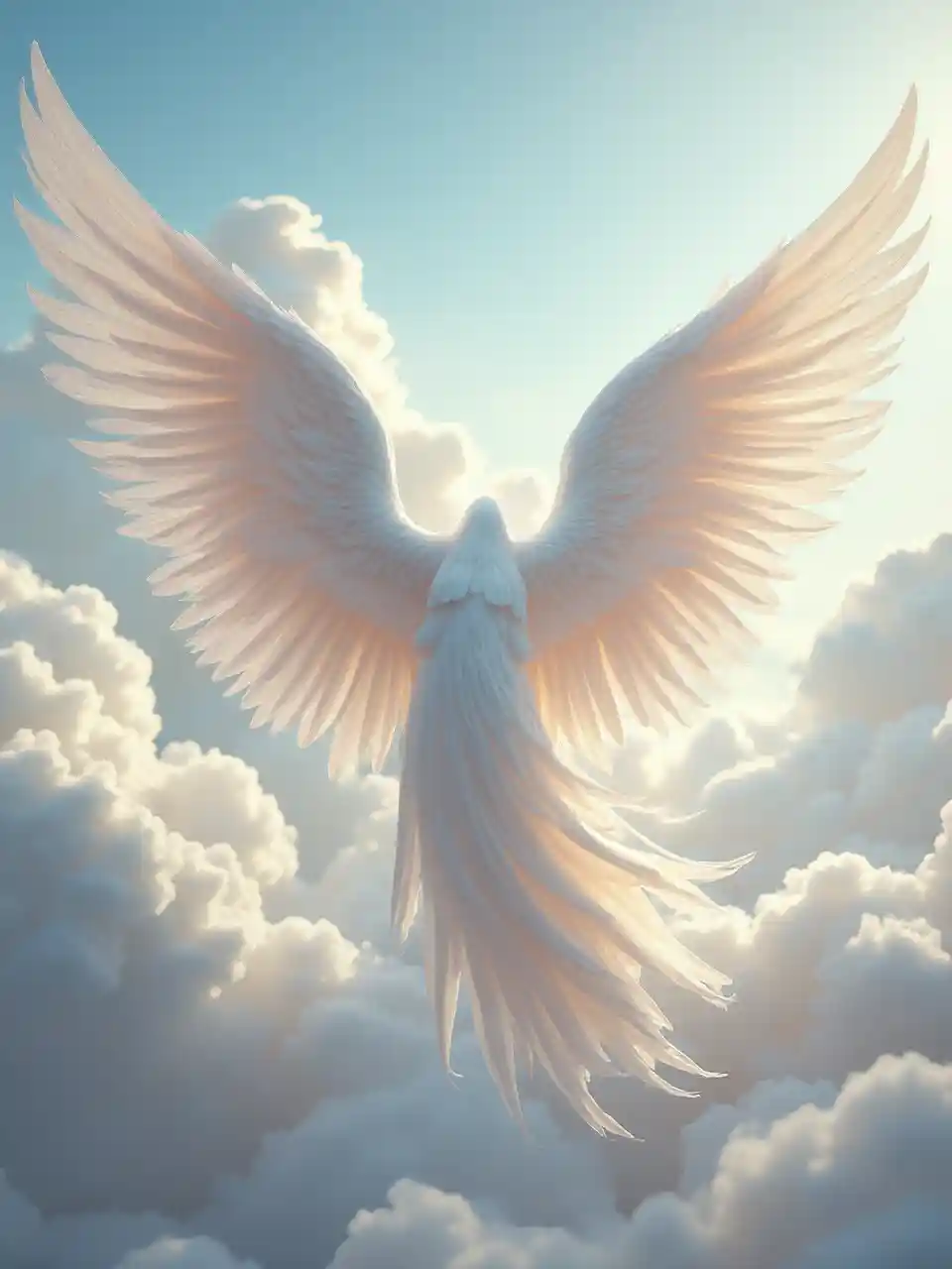 (Đôi cánh thiên thần), mô hình quyến rũ, vẻ đẹp thanh tao, thể hiện đôi cánh hùng vĩ và phức tạp, chi tiết mềm mại, kết cấu tinh tế, nổi duyên dáng giữa không trung, được bao quanh bởi bầu không khí mơ mộng, (ánh sáng yên tĩnh), tông màu mềm mại, ánh sáng thanh tao, bầu không khí quyến rũ, (chất lượng 4K), hình ảnh siêu chi tiết, nền đẹp của bầu trời nhiều mây, truyền cảm giác tự do và hài hòa.