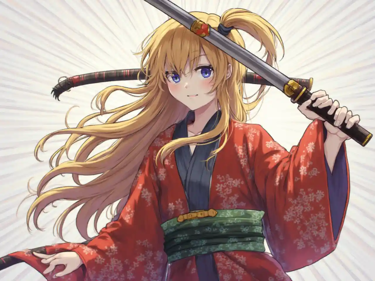 Các nhân vật anime trong kimono sử dụng katana