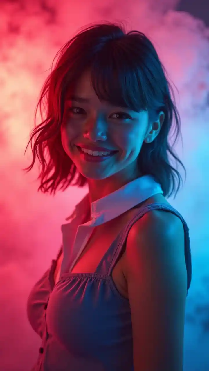 Nhiếp ảnh gia chuyên nghiệp Anya Taylor-Joy mỉm cười, mặc trang phục nữ sinh học đường sang trọng, màu da ô liu rực rỡ, nét mặt hoàn hảo, nền khói neon rực rỡ, sương mù khối lượng mềm mại, phong cách siêu thực tế, ánh sáng gián tiếp nhẹ nhàng, chi tiết đáng kinh ngạc và quyến rũ, được chụp trong độ nét cực cao 8k tuyệt đẹp.