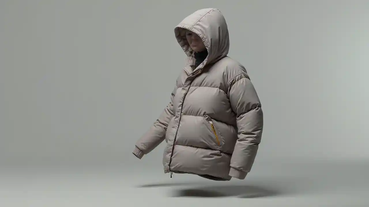 Chiếc áo khoác lông xù màu xám đất bay lơ lửng trên không trung