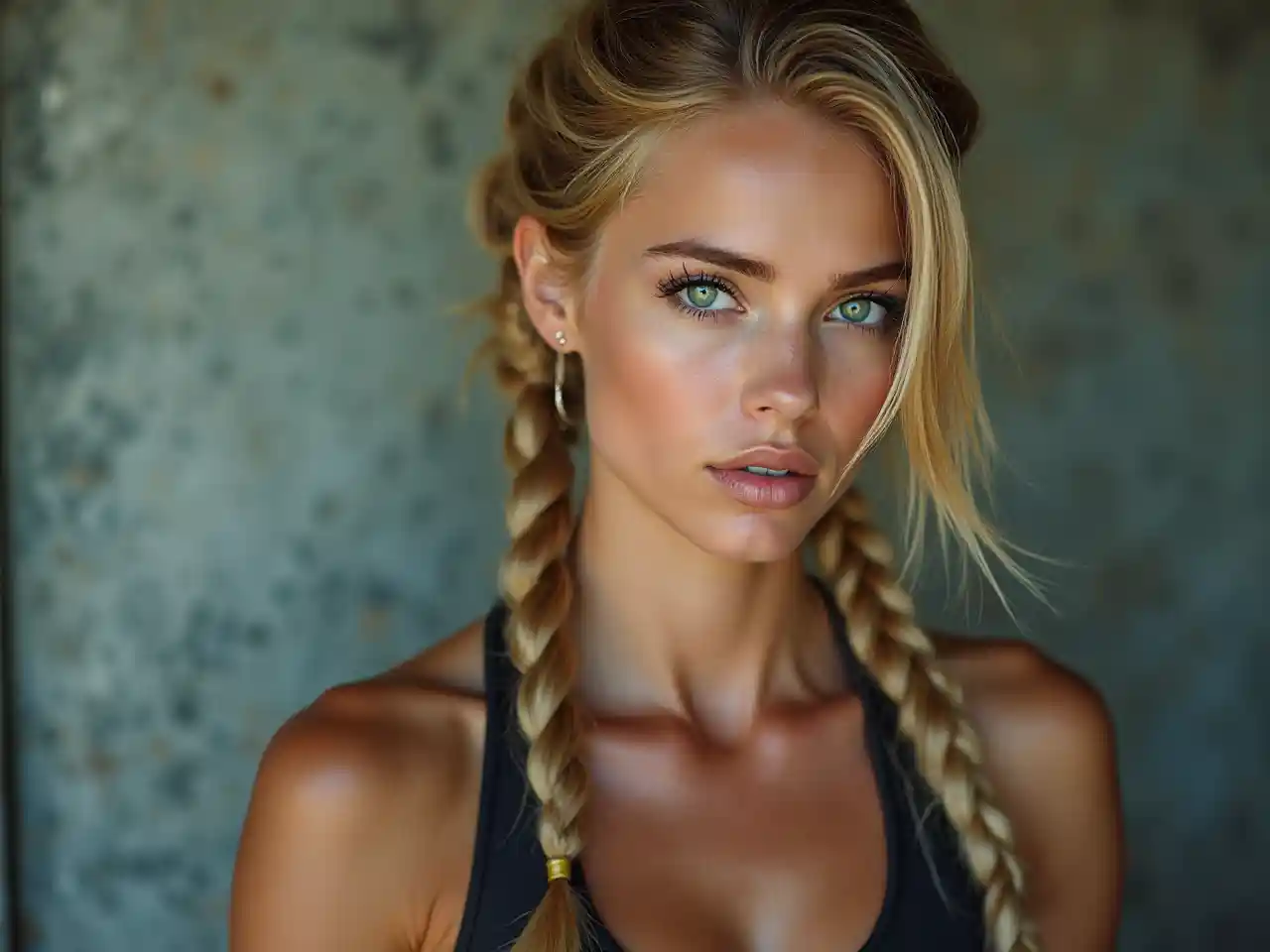 Tập gym, tóc vàng, mắt xanh, tóc tết,