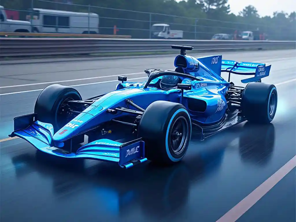 đua xe F1, cơ thể màu xanh, cơ thể kim loại, ngọn lửa màu xanh, bùng nổ, lái xe nhanh, độ phân giải cao nhất, chất lượng tốt nhất,