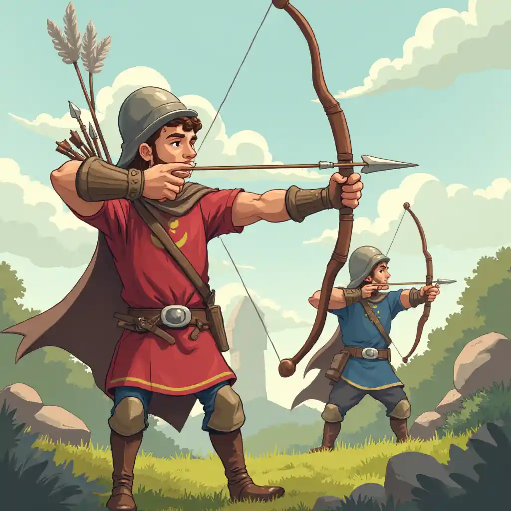 Hình ảnh hoạt hình người lính sử dụng cung tên