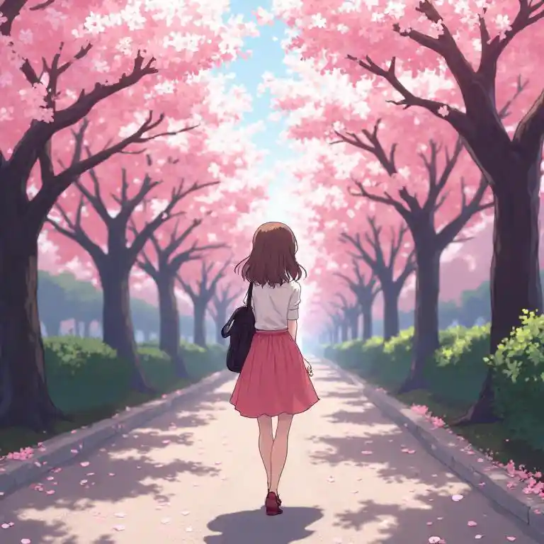 Ella1 cô gái, đi bộ trên đường phố của hoa anh đào, (rất nhiều cánh hoa anh đào rơi), kiệt tác, cực phẩm, siêu A độ phân giải cao, toàn thân ph