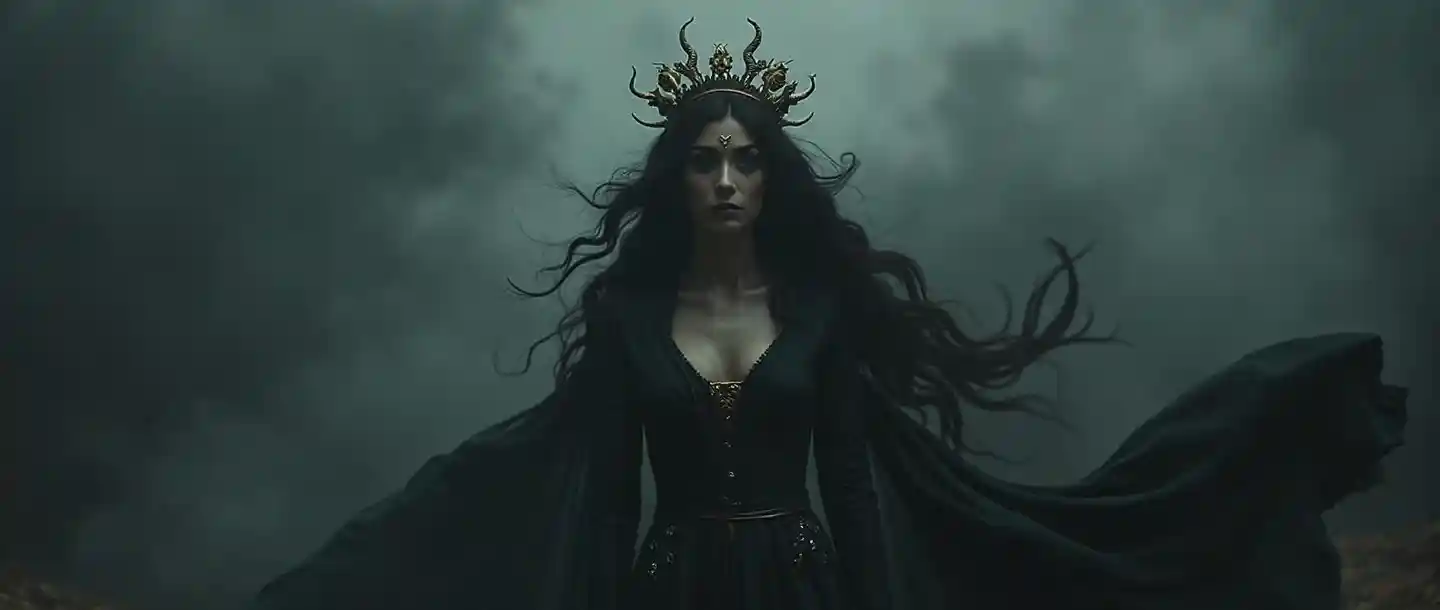 Nữ thần bóng tối trong vương miện vàng với khói