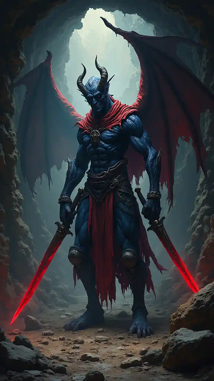 Dưới lòng đất địa lao lam hồng y ma cầm hai thanh kiếm