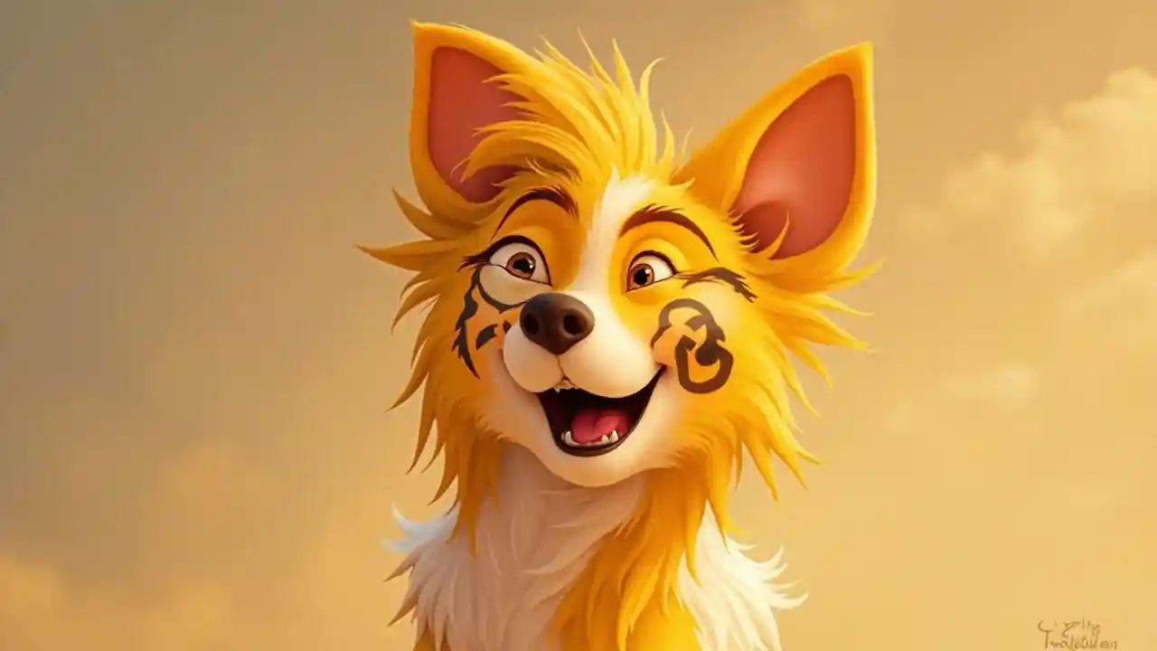 Poster phim lấy cảm hứng từ Disney pixar có tựa đề Leo, trong hình là một chú chó chăn cừu biên giới Pháp màu vàng với đôi tai màu vàng và một dải màu trắng trên mũi