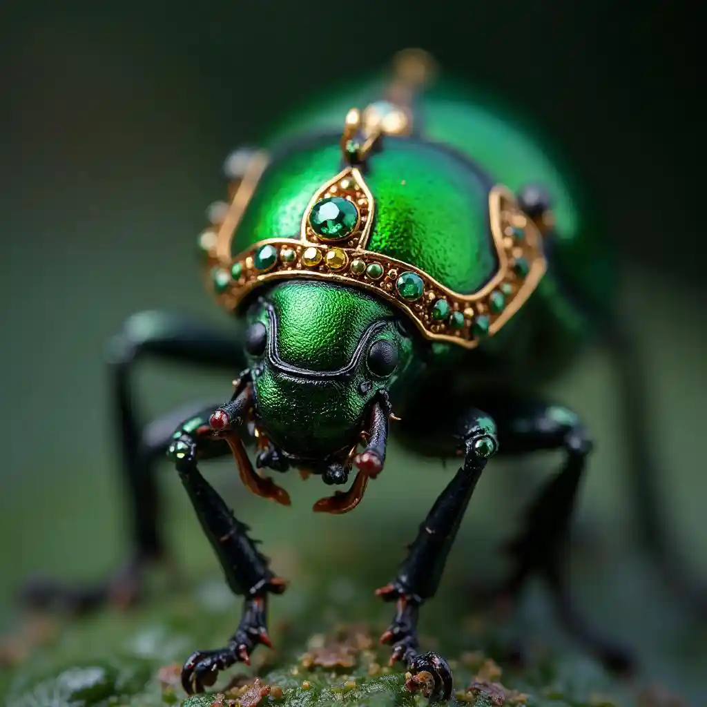 Bọ cánh cứng màu xanh lá cây siêu nhỏ với mũ bảo hiểm đá quý