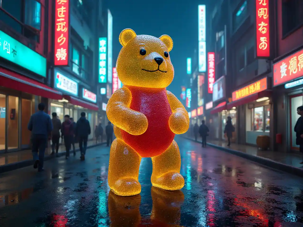 Kẹo dẻo gấu khổng lồ trong Cyberpunk Tokyo