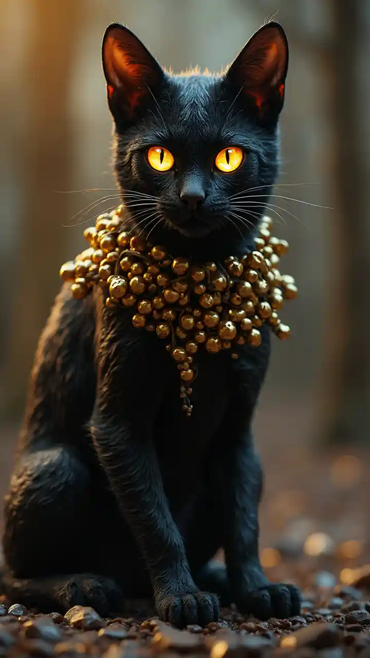 91; người mèo nhân cách 93;, toàn bộ cơ thể, trong sự phát triển đầy đủ, đôi mắt phát sáng, nhìn vào khán giả, con quỷ tưởng tượng đen tối, mạng gothic, thần thoại Ai Cập kinh dị, dây kim loại vàng bí ẩn, điểm số pha lê sáng bóng, nghi lễ giáo phái, (kiệt tác: 1.2):: (chất lượng tốt nhất: 1.2):: (phức tạp):: (hình nền), ánh sáng toàn cầu, theo dõi ánh sáng,