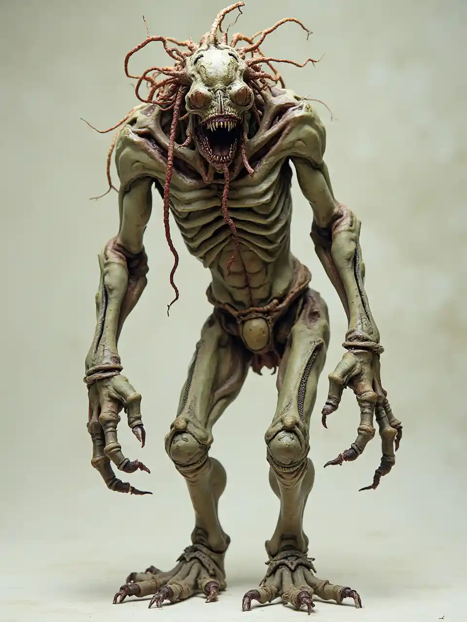 Ác độc, được sinh ra từ các thí nghiệm di truyền thảm khốc, là một sự pha trộn kỳ lạ của các yếu tố con người và eldritch. Khung hình người của nó bị xoắn, các chi có chiều dài không đồng đều và các khớp bị biến dạng, mang lại cho nó một cái nhìn không tự nhiên và không ổn định. Da là một sự pha trộn bệnh lý của các sắc thái khác nhau, cho thấy sự pha trộn đáng lo ngại của thịt người và kết cấu ngoài hành tinh. Các đặc điểm trên khuôn mặt của nó là những bức ảnh ghép ác mộng về giải phẫu người bị bóp méo. Đôi mắt từng là con người đã biến đổi thành một khối cầu đa diện. Miệng là một cái khe kỳ cục kéo dài một cách không tự nhiên, để lộ những hàng răng lởm chởm, bất thường. Mào đầu của người bị nhiễm độc có biến thể tua hoặc nhô ra. Các tĩnh mạch tiếp xúc và các nút phát quang sinh học xung đi qua cơ thể sinh vật, cho thấy sự hợp nhất không tự nhiên của vật liệu di truyền. Các chi của nó mang dấu vết của các thí nghiệm, với các phần phụ cong vênh và kết thúc bằng các ngón tay vuốt dài. Quỷ dữ di chuyển với tính di động đáng lo ngại, như thể cấu trúc gen của nó đang thay đổi liên tục