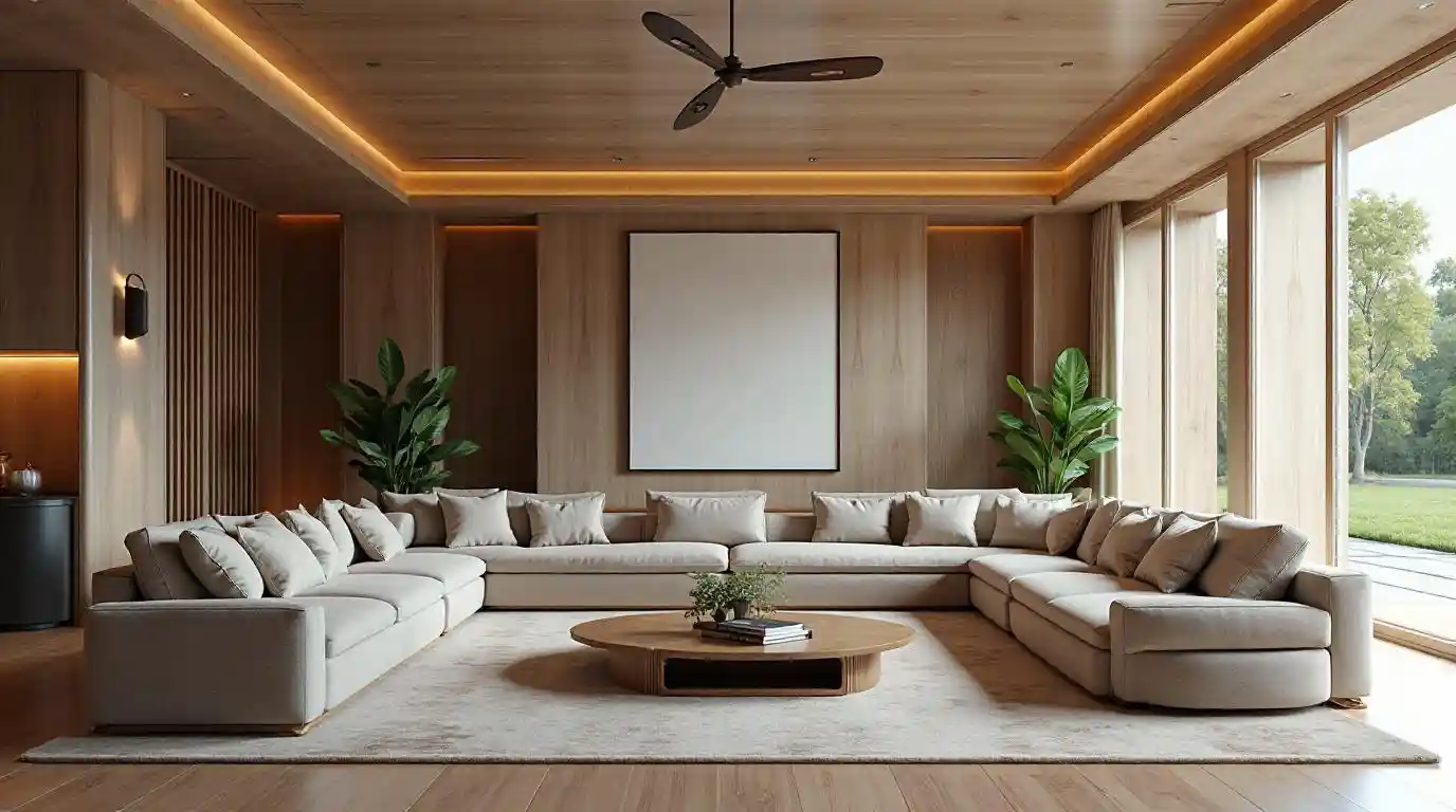Nội thất nhà ở: Phòng khách rộng rãi không có ghế sofa