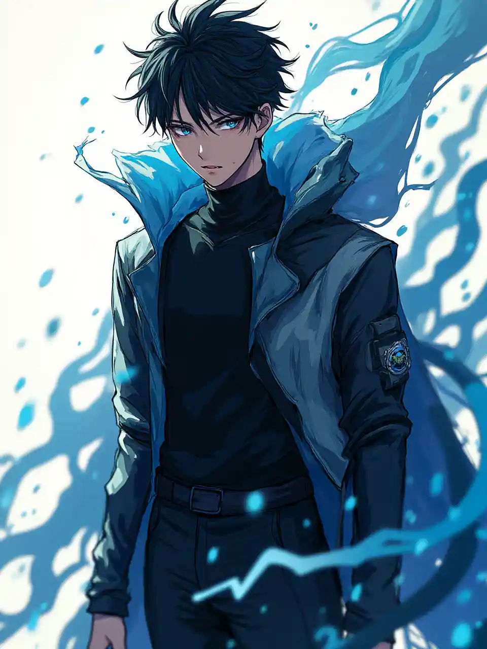 Một poster phim nổi bật cho thấy một nhân vật nam mặc trang phục màu đen, trắng và xanh thời trang, được thực hiện theo phong cách độc đáo của Yoh Nagao. Thiết kế nhấn mạnh sự tương tác giữa ánh sáng và bóng tối, mang lại cho nó chất lượng hình ảnh năng động, phát sáng với tỷ lệ khung hình bố cục dọc hấp dẫn. Những gợi ý của các yếu tố trừu tượng nhảy xung quanh nhân vật, thêm chiều sâu và chuyển động trong khi vẫn duy trì một dòng chảy hài hòa. Cảm giác tổng thể là hiện đại và hấp dẫn, mời khán giả vào một thế giới đầy bí ẩn và phong cách.