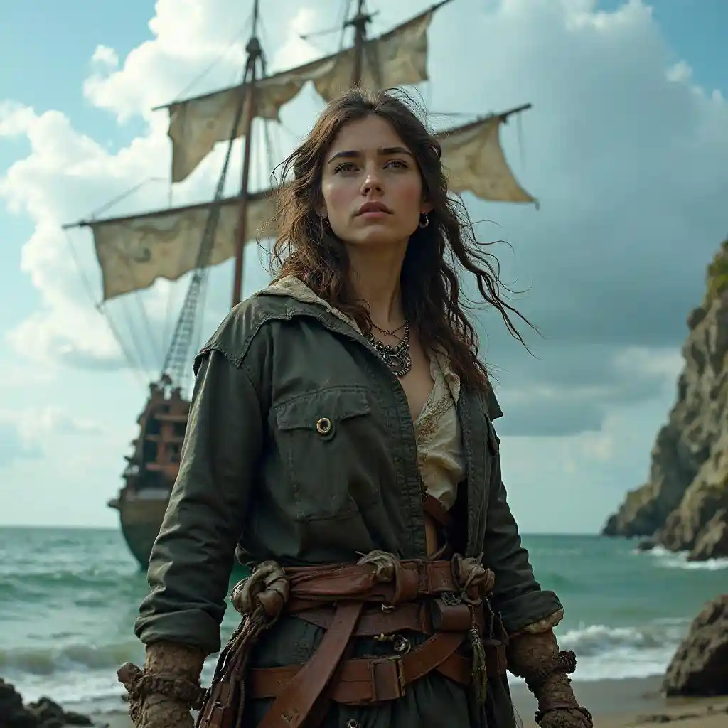 Tham nhũng thuyền trên cướp biển cô gái thấp góc nhìn