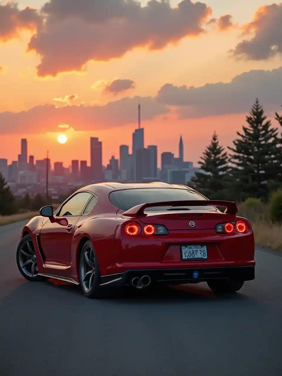 HudsonMột chiếc supra mk4 màu đỏ với thành phố hoàng hôn