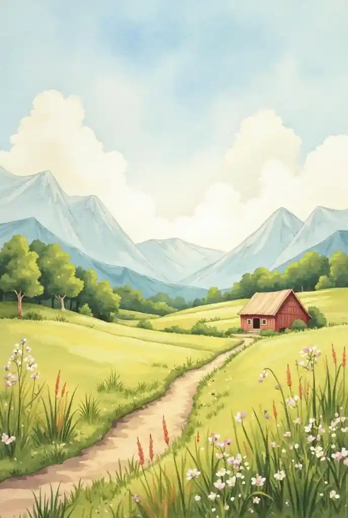 ZoeTranh chạm, phong cảnh nông thôn, nhỏ, nụ cười, màu nước