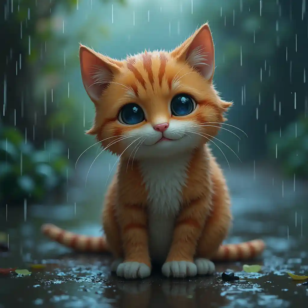 Hình ảnh chú mèo buồn trong mưa