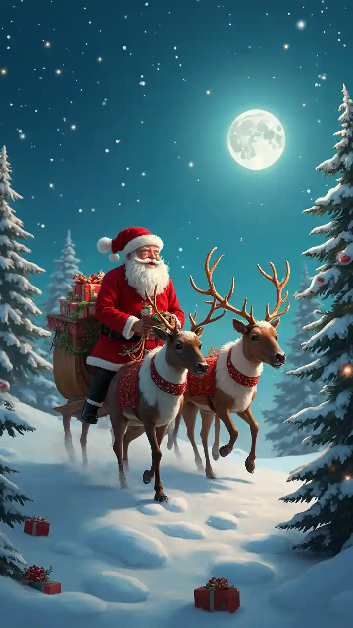 Ông già Noel tặng quà bằng tuần lộc