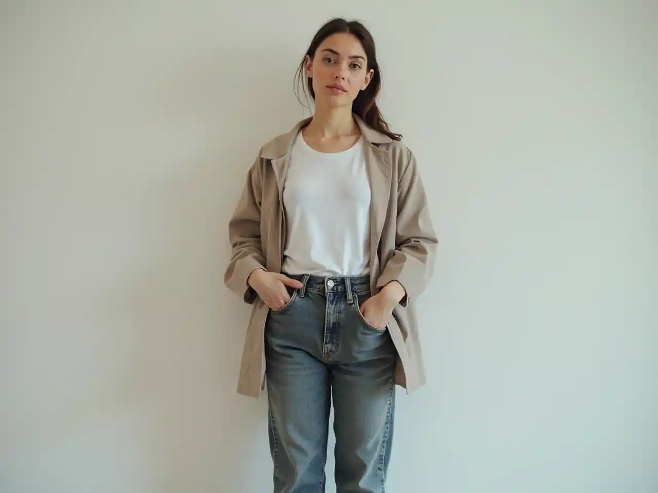 Người phụ nữ co lại, mặc quần áo rộng rãi