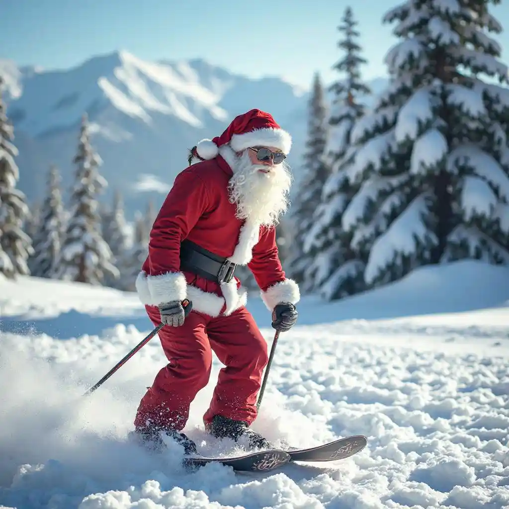 Ông già Noel trượt tuyết ở Lake Tahoe, xé, mát mẻ, không khí lễ hội