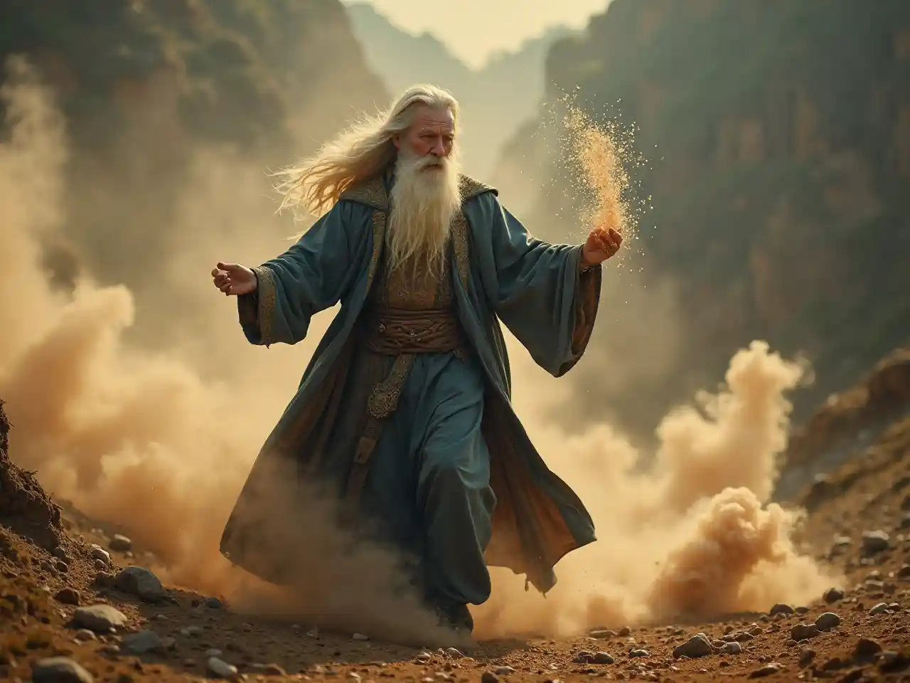 Wizard tiến lên một bước và ông bắt đầu thực hiện một câu thần chú mạnh mẽ gây ra gió lớn, thổi bụi và các hạt ma thuật