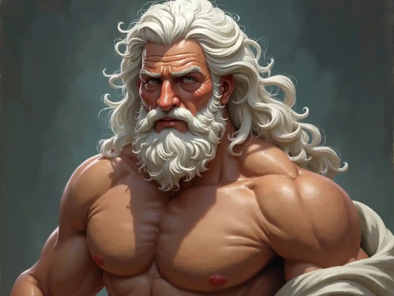 Vẽ một bức chân dung thô của Zeus, Thor, một vị thần Hy Lạp với mái tóc trắng nổi bật. Anh ta được miêu tả là trưởng thành, đẹp trai và nam tính, cho thấy phần trên của cơ thể vừa cơ bắp vừa được trang trí bằng một thân cây đầy lông. Tác phẩm nghệ thuật này là hiện thân của một phong cách huyền ảo với các chi tiết phức tạp và kết xuất thanh lịch trong một định dạng tranh kỹ thuật số gợi nhớ đến nghệ thuật của Gaston Bussiere và Alphonse Mucha. Tác phẩm mượt mà và tập trung rõ ràng, truyền tải chất lượng minh họa thường thấy trên các nền tảng như ArtStation. Trọng tâm là nghệ thuật khái niệm năng động để tránh các lỗi như hiểu lầm văn bản hoặc chất lượng hình ảnh kém. Mô tả đảm bảo giải phẫu chính xác, các tính năng tương xứng và duy trì tính toàn vẹn thẩm mỹ mà không rơi vào các bẫy phổ biến như độ phân giải thấp hoặc biến dạng.