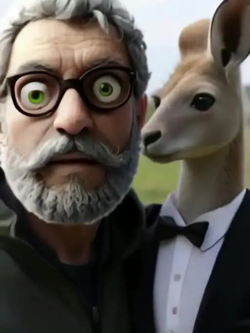 Meet our charming character with a beard and glasses, dressed to the nines in a formal suit, having a hilarious conversation with his kangaroo buddy! Thanks to cutting-edge AI technology, they’re not just standing there; they’re lip-syncing to some of your favorite tunes and quotes! Just watch as our dapper gentleman perfectly matches every beat and lyric while his kangaroo adds a delightful hop and bounce that makes the whole scene even more entertaining. Whether it’s for a fun social media post, a quirky birthday greeting, or just to share a laugh with friends, this dynamic duo showcases the playful side of AI. Their synchronized chatter and catchy tunes highlight how these animated characters can add a splash of joy to any moment. So get ready to vibe with our stylish human and his lively kangaroo as they redefine what it means to be animated and entertaining!