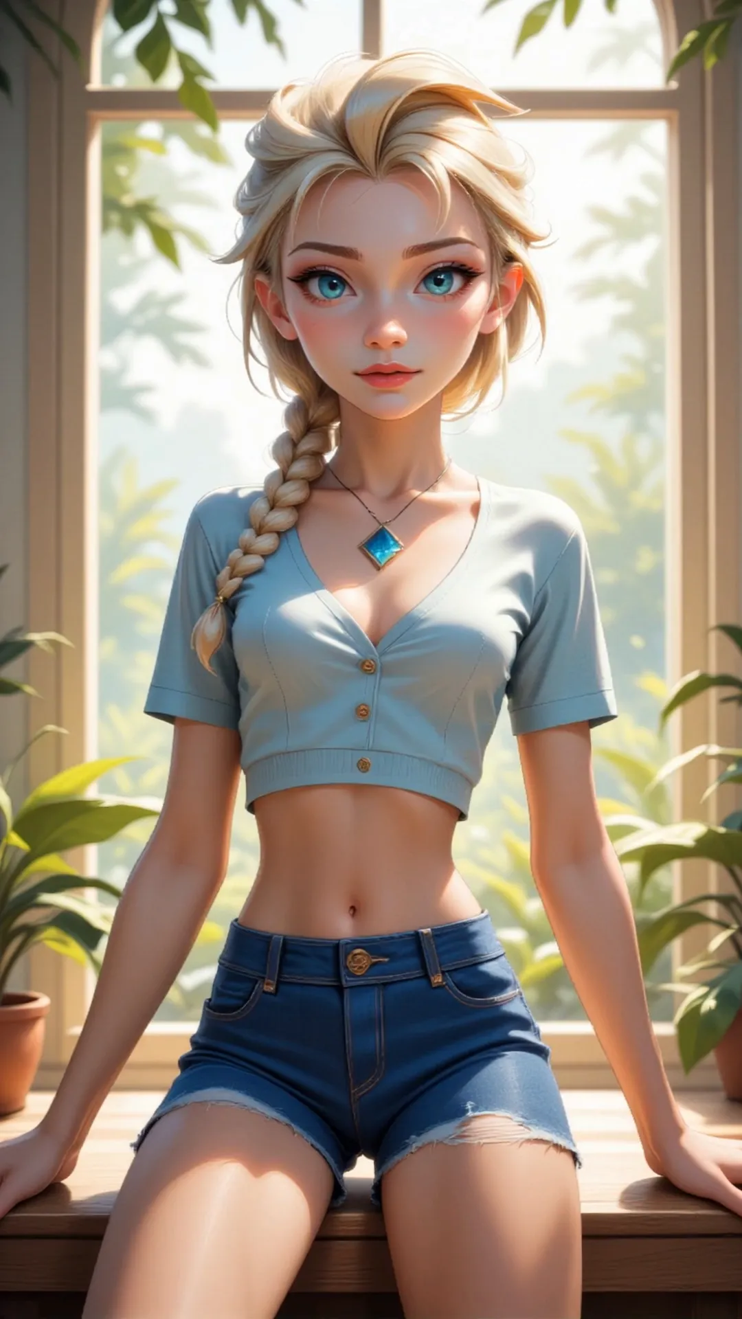 Just picture this: a young woman with long blonde hair braided gracefully, dressed in a light blue crop top and denim shorts, sitting by a sunlit window. The lush greenery outside creates a serene backdrop as soft, natural light spills into the room. This scene is not just visually stunning; it sets the perfect mood for creativity. Imagine transforming moments like these into captivating AI videos that truly come to life! With Dreamface, the possibilities are endless. Their AI special effects offer hundreds of templates to choose from, allowing you to create videos in different styles and moods. Whether you want to amplify the beauty of everyday moments or craft something entirely unique, Dreamface provides the tools to make your vision a reality. Dive into a world of fun and creativity with AI video effects that engage and entertain. Embrace the magic and let your imagination run wild!