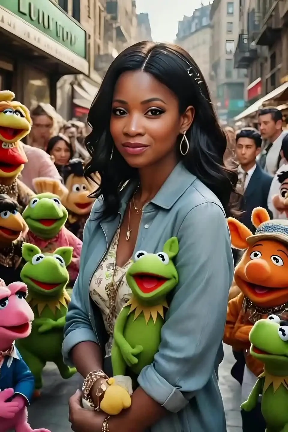 Watch as this vibrant woman takes center stage, surrounded by her playful Muppet friends in a bustling street scene! With a Muppet in her hands, they come to life, lip-syncing to hilarious tunes and heartwarming lines. Thanks to AI magic, these colorful characters can now talk and sing, adding a whole new dimension to fun! Imagine the laughter as they perform in sync, cracking jokes, and sharing silly songs with the crowd. Whether it's a birthday party, a quirky commercial, or just a delightful social media moment, these AI-powered Muppets bring joy and entertainment to any occasion. Dive into a world where imagination meets technology, and let the laughter begin!