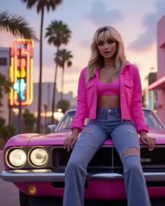 Picture this: a lively character in a bright pink jacket and ripped jeans perched confidently on the hood of a stunning pink car. With palm trees swaying in the breeze and neon signs lighting up the night, the scene is set for some fun! Thanks to AI, this vibrant individual is not just posing but chatting like a pro, perfectly syncing their lips with the catchy tune playing in the background. Imagine the humor and surprise as they belt out lyrics, turning their casual vibe into a mini concert right there on the street! Whether it’s for a silly TikTok, an unforgettable Instagram reel, or just to share a laugh with friends, this AI-enabled lip-sync magic brings endless joy and creativity to every moment. Get ready to unlock the power of expression and let your favorite personalities shine!