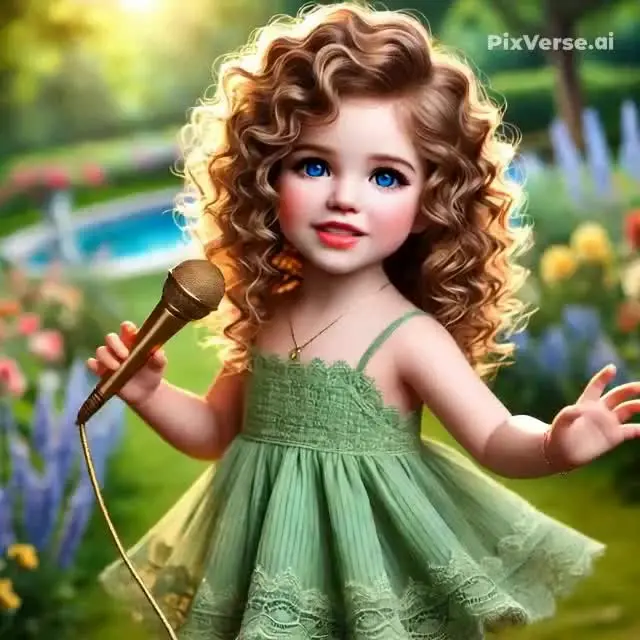 In a vibrant garden bursting with color, a young girl with curly blonde hair and sparkling blue eyes takes center stage, microphone in hand, in her stunning green lace dress. With a playful smile, she breaks into laughter, showcasing the magic of AI as she sings along to her favorite tune, her lips perfectly synced to every note. It's not just a delightful performance; it's a glimpse into a world where photos spring to life! Imagine using this fun technology for family gatherings, parties, or just sharing a laugh with friends. The charm of this little diva brings joy and creativity to every moment, making ordinary times extraordinary. With AI enabling this lively lip-sync magic, every snapshot becomes an opportunity for fun and unforgettable memories!