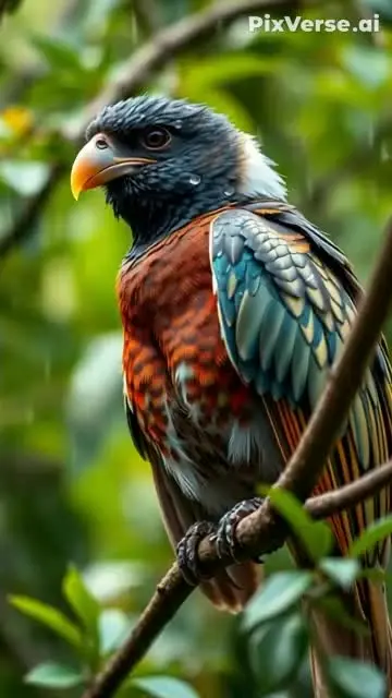 In this delightful scene, a stunning bird flaunts its vibrant blue, orange, and green feathers, effortlessly perched on a branch surrounded by lush greenery. With raindrops glistening in the background, it suddenly starts to sing a catchy tune, its tiny beak moving perfectly in sync with the rhythm. Thanks to advanced AI technology, this feathered friend doesn’t just sing; it brings joy and laughter by mimicking your favorite songs and phrases! Picture the endless fun you can have with this avian entertainer, whether it’s serenading you during a family gathering or adding a burst of color to a virtual chat. With every flap and chirp, this bird transforms ordinary moments into extraordinary ones, showcasing the incredible capabilities of AI. Join the fun and watch as nature’s beauty and technology collide to create a truly unforgettable experience!