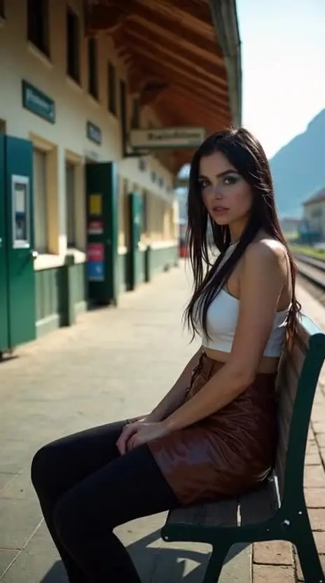 Lost in thought, a woman with long dark hair sits gracefully on a bench at a bustling train station. Dressed in a breezy white top and a flowing brown skirt, she gazes out at the stunning mountainous landscape behind her, where nature's beauty meets the rush of travel. This enchanting moment captures the essence of wandering, inviting viewers to enjoy the stillness amid the chaos of the station. Want to take your videos to the next level? Dreamface offers an incredible range of AI video effects, providing hundreds of template options to create unique styles. From mesmerizing transitions to stunning visual enhancements, the possibilities are endless! Transform your footage into something truly captivating and share your adventures with the world. Dive into the fun and explore the rich features Dreamface has to offer!