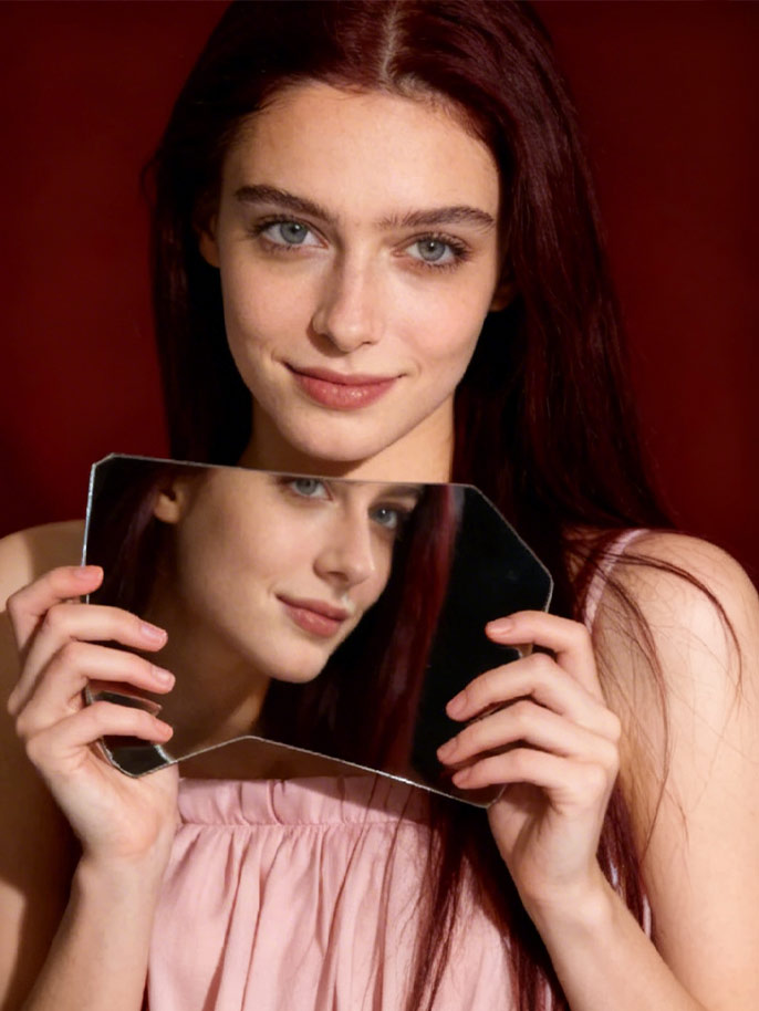 上传清晰的人像或侧脸图像。具有可见面部轮廓和良好照明的照片最适合破碎的镜面反射效果。