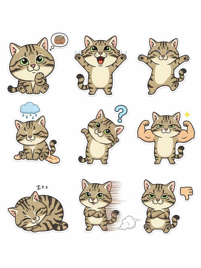 一旦生成完成,预览你的完整表情表,爱上可爱的结果。你可以以高分辨率下载这套设备——非常适合分享、打印或用作贴纸。