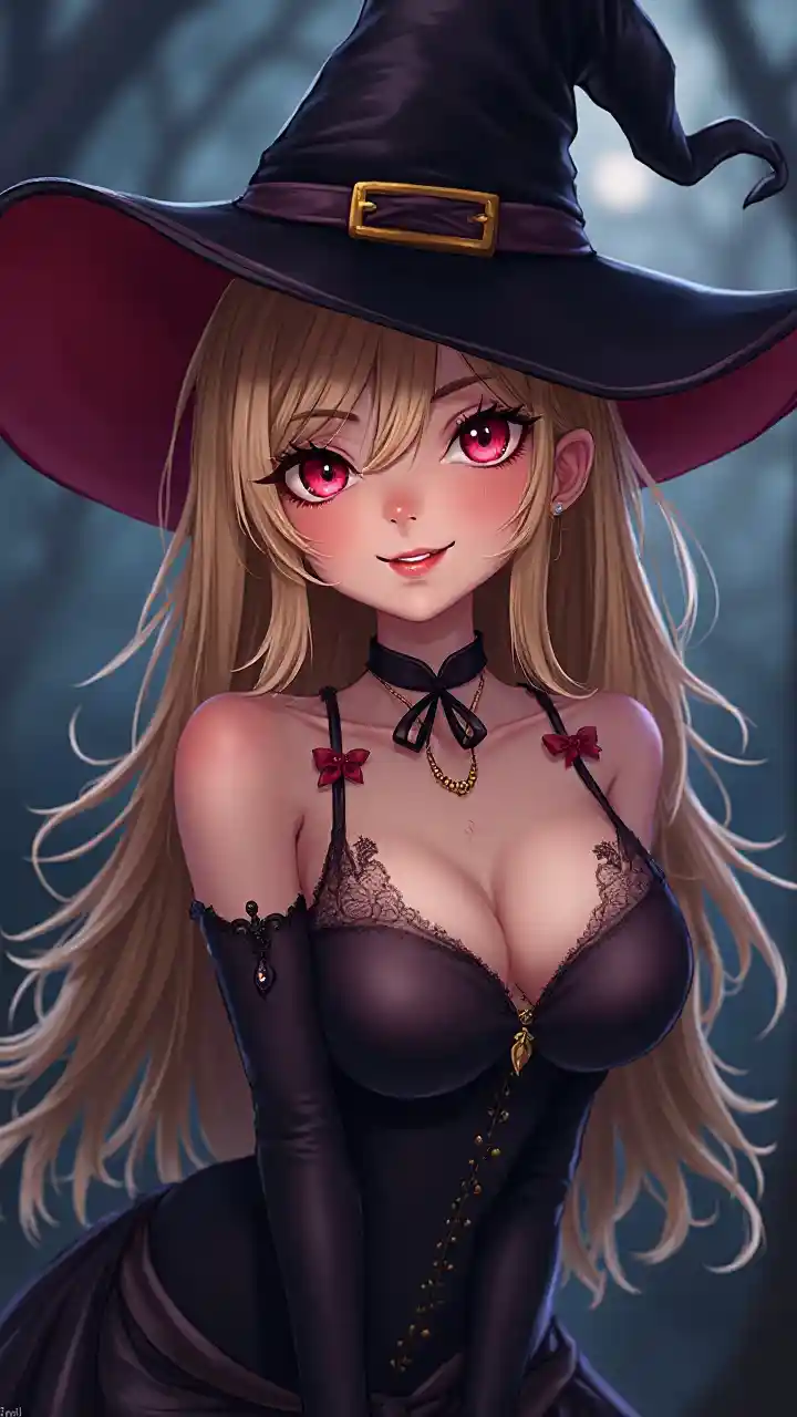 (代表作,质量最好),1个女孩,年轻,可爱的脸,性感的女巫装,催眠的眼睛,温暖的微笑,乳沟,